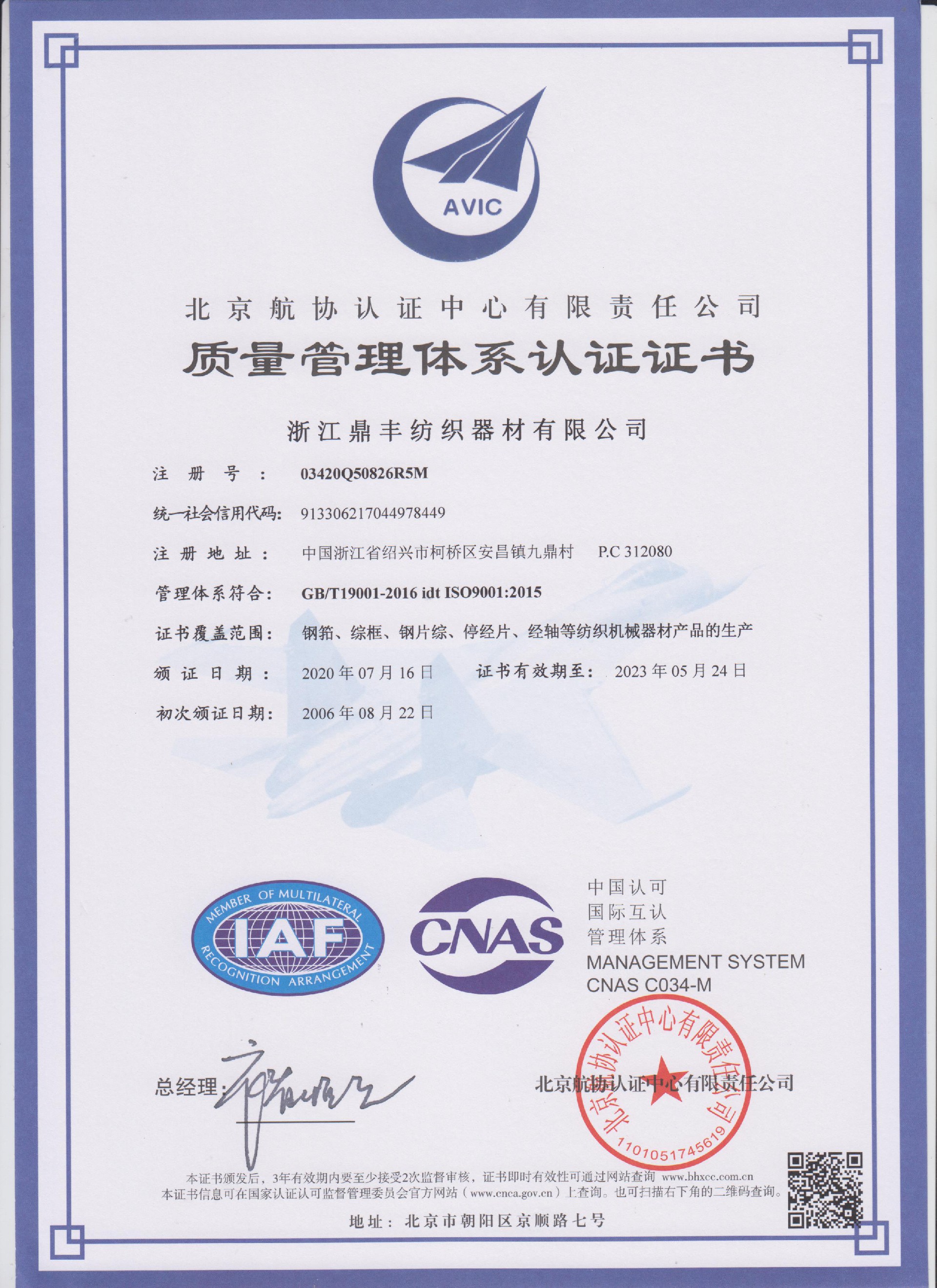 浙江鼎豐紡織器材有限公司始建于1986年,是一家專(zhuān)業(yè)生產(chǎn)各類(lèi)無(wú)梭織機(jī)用鋼筘:噴氣筘、噴水筘、劍桿筘、其他類(lèi)型鋼筘;鋁合金綜框、鋼片綜、停經(jīng)片、經(jīng)軸、織軸、卷布輥等產(chǎn)品及配件的民營(yíng)企業(yè)。